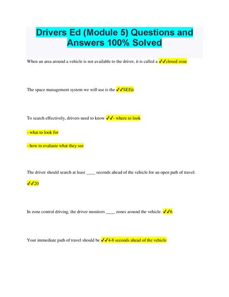 Download Drivers Education Module 5 Workbook Answers PDF